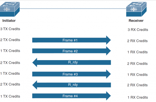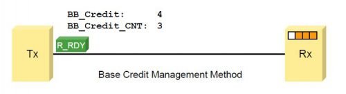 از این نوع Flow-control معمولا برای ارتباط بین N-port با F-Port استفاده میشود.ابتدا با تبادل Receive Size Buffer-to-Buffer Credit مشخص میشود هردستگاه چندبار میتواند ارسال کند که این عدد در شمارشگری به نام BB_Credit ذخیره میشود.این عدد در یک شمارشگر ذخیره میشود و باهر بار ارسال یک واحد از این شمارشگر کم میشود .ارسال فریم تا زمانی ممکن است که شمارشگر صفر نشده باشد .گیرنده پس از دریافت فریم یک پیام R-ready به فرستنده ارسال میکند که باعث میشود یک واحد به شمارشگر اضافه شود.