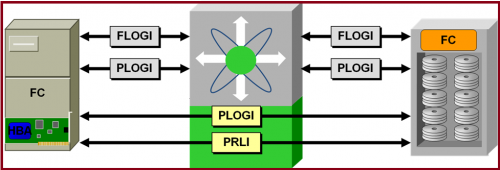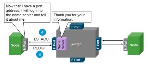 زمانیکه سرور یا دستگاه ذخیره ساز ما روشن میشود یک Fabric Login request) FLOGI) که شامل wwwpN خود دستگاه میباشد ارسال میکند، سویچ متصل به دستگاه یک FCID 24-bit به دستگاه اختصاص میدهد.